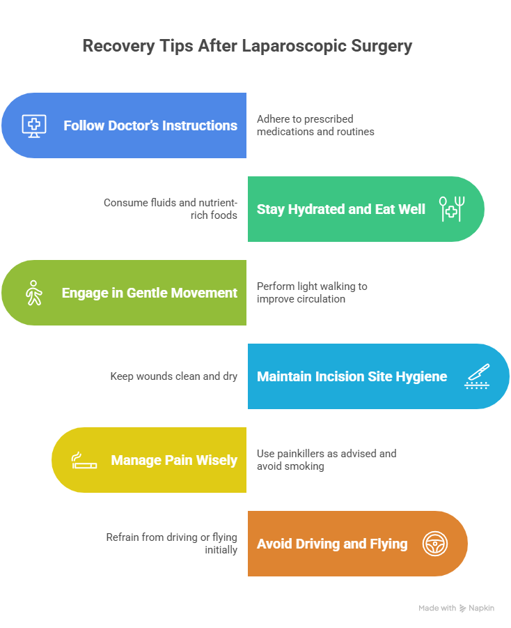 Recovery after laparoscopic surgery is often quicker and smoother compared to traditional surgery. Following post-operative care guidelines, maintaining a healthy lifestyle, and gradually increasing activity levels can accelerate healing and improve outcomes.